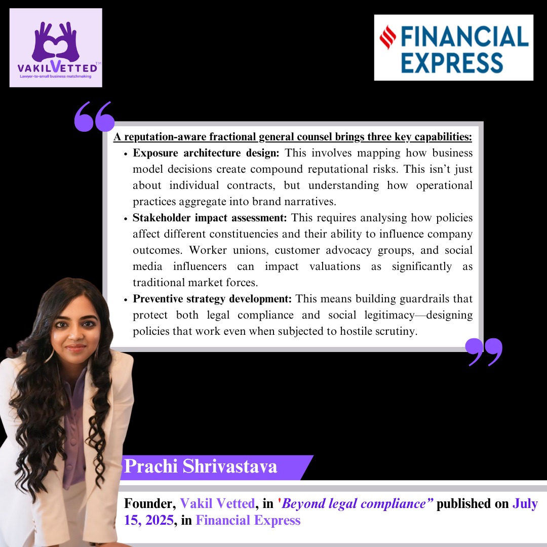 Vakil Vetted connects small businesses and startups with the right lawyer based on your city, industry, and current risk—no ads, no guesswork, and no commission